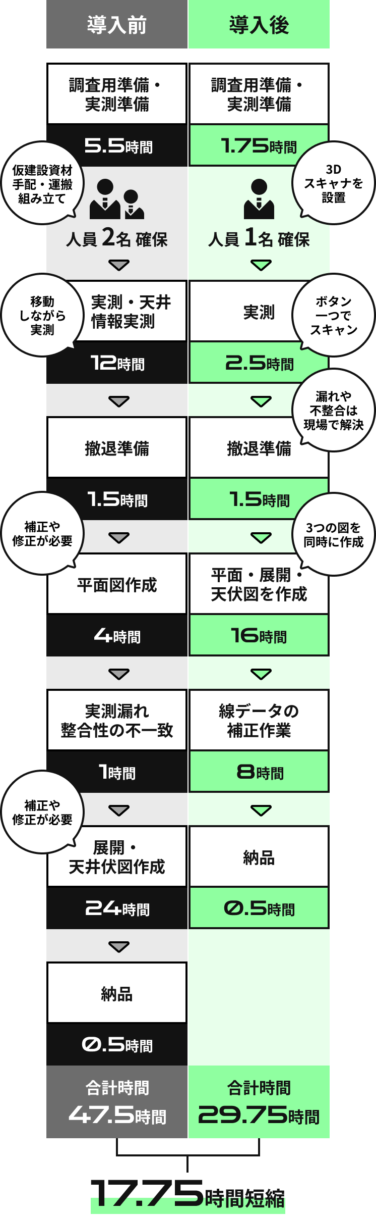 高所作業や現場の滞在時間を短縮。
